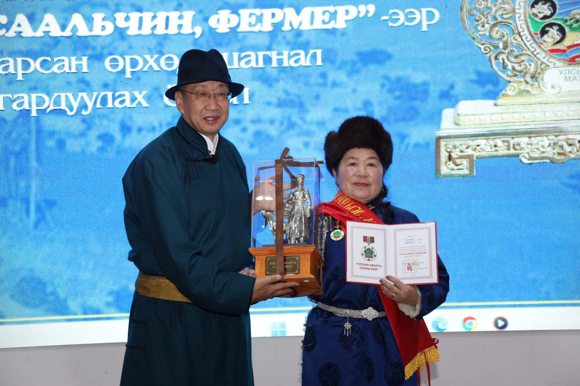 МОНГОЛ УЛСЫН ИХ ХУРЛЫН ГИШҮҮН Л.ЭНХ-АМГАЛАН ХӨВСГӨЛ АЙМГААС ТОДОРСОН УЛСЫН АВАРГА МАЛЧИН, УЛСЫН АВАРГА ФЕРМЕР, УЛСЫН АВАРГА СААЛЬЧНААР ТОДОРСОН ЭРХМҮҮДЭД ШАГНАЛЫГ ГАРДУУЛАН ХҮНДЭТГЭЛ ҮЗҮҮЛЛЭЭ.