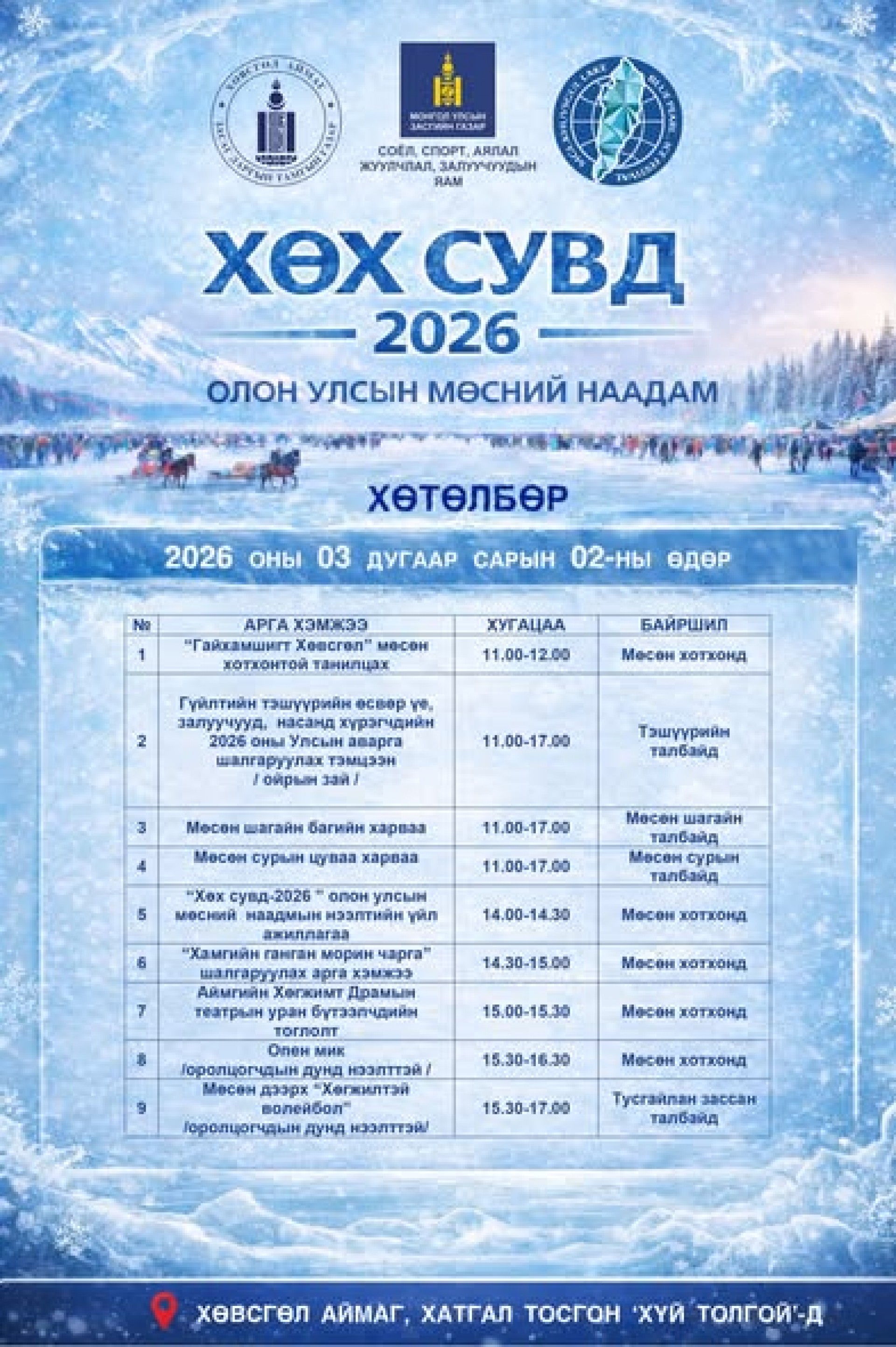 "#ХӨХ_СУВД 2026" ОЛОН УЛСЫН МӨСНИЙ НААДАМ 03 ДУГААР САРЫН 2, 3, 4-НИЙ ӨДРҮҮДЭД ЗОХИОН БАЙГУУЛАГДАНА.